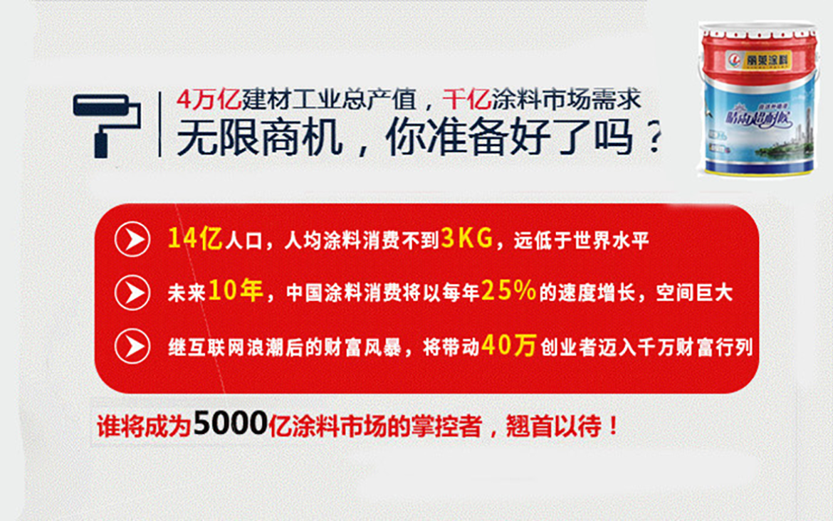自公司創(chuàng)立之初,公司就以“讓家更美麗 , 生活更健康” 為經(jīng)營理念,利用先進的環(huán)保科技與藝術(shù)的完美結(jié)合,研發(fā)生產(chǎn)出高端水性漆、環(huán)保藝術(shù)涂料和外墻仿石涂料、膩子產(chǎn)品,始終以高品質(zhì)的產(chǎn)品和優(yōu)質(zhì)服務(wù)為核心,不斷推動“高端墻面涂裝方案”的升級,以科技創(chuàng)新和綠色環(huán)保理念為導(dǎo)向,致力于把“建筑集成涂裝解決方案”等推向行業(yè)的前沿。